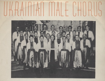 Photo of the Ukrainian Male Chorus from Winnipeg, as printed on the back of their album, Ukrainian Male Chorus Sings Folk Songs. |