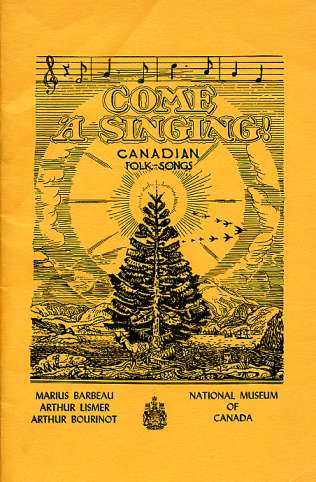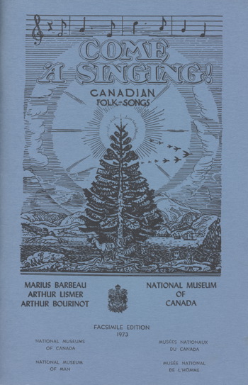 Cover of Canadian folk song book, Come ‘A Singing: Canadian Folk-Songs, Facsimile Edition, compiled by Marius Barbeau, Arthur Lismer and Arthur Bourinot, (Ottawa: National Museums of Canada, 1973) |