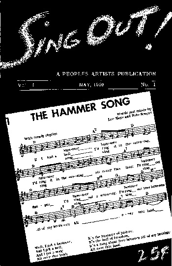 Cover of Sing Out Magazine featuring Pete Seeger’s The Hammer Song, Volume 1, Number 1, May 1950 |
